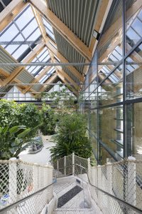 Structure mur rideau avec drainage inversé sur traverse.
