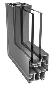 • Vues d’aluminium réduite à 45 mm pour le dormant en version bloc baie, à 74mm pour le battement central