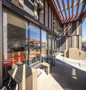 En complément, la Façade Compacte KASTELLANE a apporté un look épuré et moderne avec ses lignes horizontales et verticales nettes, parfaites pour l’entrée du restaurant. Cette façade permet une installation et un drainage optimisés, garantissant une structure durable et sécurisée. Ensemble, ces produits ont non seulement renforcé l’attrait esthétique du bâtiment, mais ont également contribué à la durabilité fonctionnelle requise dans un environnement de restauration rapide très fréquenté.